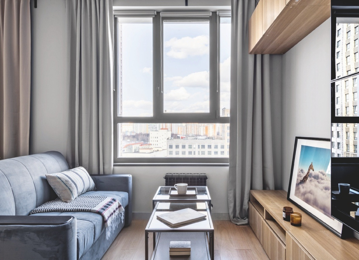 Владельцы небольшой московской квартиры — увлекающаяся туризмом и активными видами спорта молодая пара — выразили желание жить в обстановке спокойных серых тонов с обилием различных естественных фактур. Им требовались три просторные хотя бы по ощущениям комнаты разного функционала.