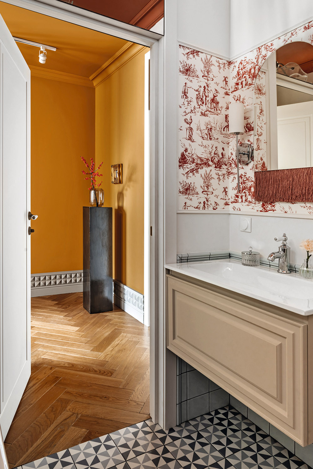 Идея сделать такую квартиру пришла моей заказчице Виктории, она занимается направлением посуточной аренды в Москве, и это уже наш десятый совместный проект. Мы вместе полноценно сделали ремонт в одной из посуточных квартир Виктории, которая произвела фурор в медиа, проект назвали «Красная Москва». Таким же образом мы совместно задекорировали несколько других её квартир. Однажды Виктория решила попробовать новое для себя направление — флиппинг — и, изучив конкурентов, поняла, что рынок перенасыщен бюджетными вариантами квартир, но совершенно бездушными. И тогда ей пришла идея предложить покупателям квартиру, которая наполнена цветом, чувствами, вызывает интерес. Квартиру, в которой они смогут жить красиво — принимать гостей, читать книги, смотреть старые фильмы на проекторе и расслабляться в шикарной ванне по вечерам. Здесь мы с моей заказчицей делали квартиру как под себя — выбирали хорошую сантехнику, дорогие и качественные отделочные материалы, премиальную технику для кухни и постирочной, соответствующую мебель. В общем, не экономили. Вот только жалеем, что не хватило средств на деревянные окна.
