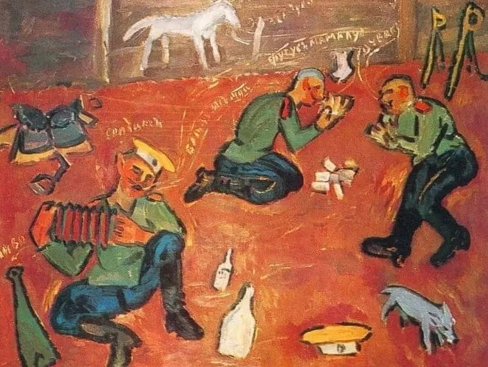 Нас было свезено в город много; несколько дней продолжался прием, и каждый день приводили нас к Казенной палате, где мы лежали на солнышке, пока по очереди водили нас в приемную. <…> Не диво, что мы сами скоро пригляделись, как вдруг бледнел товарищ, когда его выкликали по имени; как матери, сестры, отцы и братья становились на колени, пока вели его в палату, и молились Господу, чтобы он помиловал их; как старуха мать падала потом без памяти, когда раздавалось в палате: «Лоб!» — и это страшное слово переходило из уст в уста по лестнице и передавалось в народ; и как потом начинался вой и плач, когда нового рекрута выводили с забритым лбом, накинув на него солдатскую шинель; и дюжина рук хваталась за него, как за мертвого… Николай Полевой. «Рассказы русского солдата»