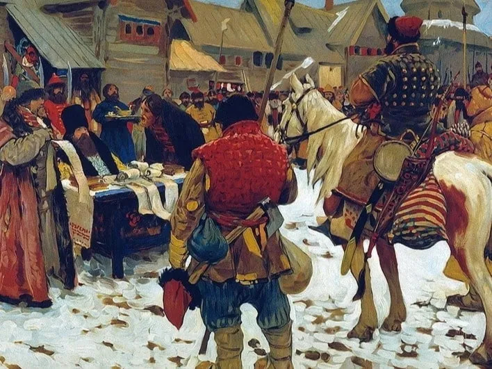 Получалось, что в посошную рать выставляли по одному человеку от трех, пяти или тридцати дворов. Посошные, позже их стали называть даточными, служили в пехоте, строили дороги, мосты и укрепления, обслуживали осадные орудия и артиллерию. Служба их была пожизненной. Наемников тоже вербовали, но массовой в России эта практика так и не стала.