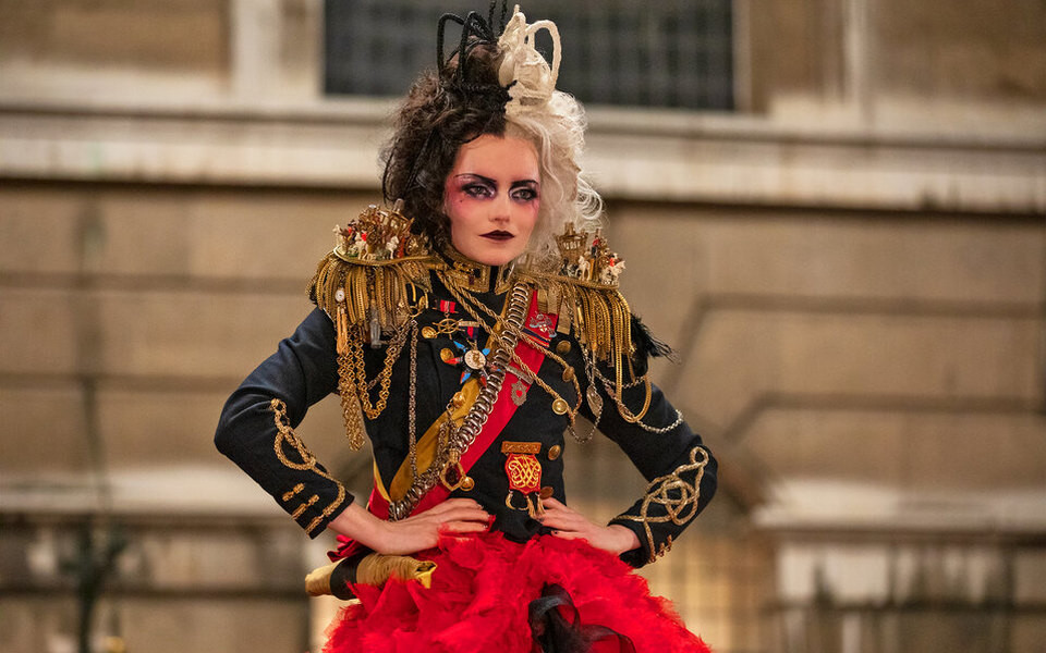 На самом деле не вполне очевидно, так ли уж сильно «Круэлла» похожа на «Джокера». Есть ощущение, что похожий вайб у ее промокампании: снова аутло в большом городе наперекор всему миру и себе самому, разве что в данном случае себе самой. Опять же, и там и там виднеется хитрая эксплуатация имеющейся в наличии интеллектуальной собственности: что Джокеру, что Круэлле де Виль не выделяли отдельного фильма. В обоих случаях персонажей изрядно переосмыслили: героя Хоакина Феникса приписали к маргиналии, Круэллу тоже — и еще объяснили, что ее мерзкий характер закалился в борьбе с истеблишментом. Круэллу, оказывается, изначально звали Эстелла: следует продолжительное интро из ее детства, где девочка видит, как злобная и влиятельная Баронесса (Эмма Томпсон) сбрасывает со скалы ее маму, натравив дрессированных далматинцев. Девочка вырастает на улице в немного сумасшедшую аферистку и вынашивает стильный план мести.