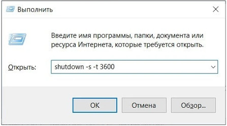 Например, команда для выключения компьютера через час будет выглядеть следующим образом shutdown -s -t 3600.