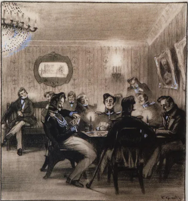 17-летний Некрасов стал поигрывать в карты в Петербурге, когда решил поступить в университет. А в 1840-е годы Некрасов, уже будучи издателем, за карточными играми не только выручал деньги, но и заводил нужные знакомства.