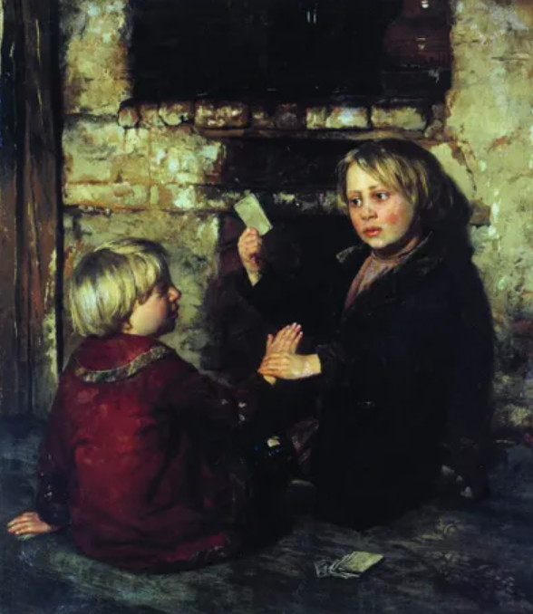 Я пошел к отцу с вопросом: «Что это за документ?» Отец сказал: «Это подлинное, благодаря которому мы не умерли с голоду и нам что-нибудь осталось. Предки наши были богаты, прапрапрадед ваш проиграл семь тысяч душ, прапрадед две, дед (мой отец) одну, я ничего, потому что нечего было проигрывать, но в карточки поиграть тоже любил» (то же должен сказать и о себе). Николай Некрасов. «Мой отец», 1870-е годы