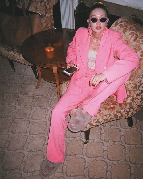 В какой-то момент короткое видео, в котором Джиджи Хадид готовится к Met Gala и ест лапшу быстрого приготовления в красивом брючном костюме, заполонило практически все Instagram-аккаунты, хоть как-то связанные с модой. Приятно, что на модели была вещь бренда Lesyanebo, еще приятнее, что Хадид появлялась в костюмах Олеси Шиповской неоднократно. Буквально на днях модель опять была замечена в брючном костюме из новой коллекции.