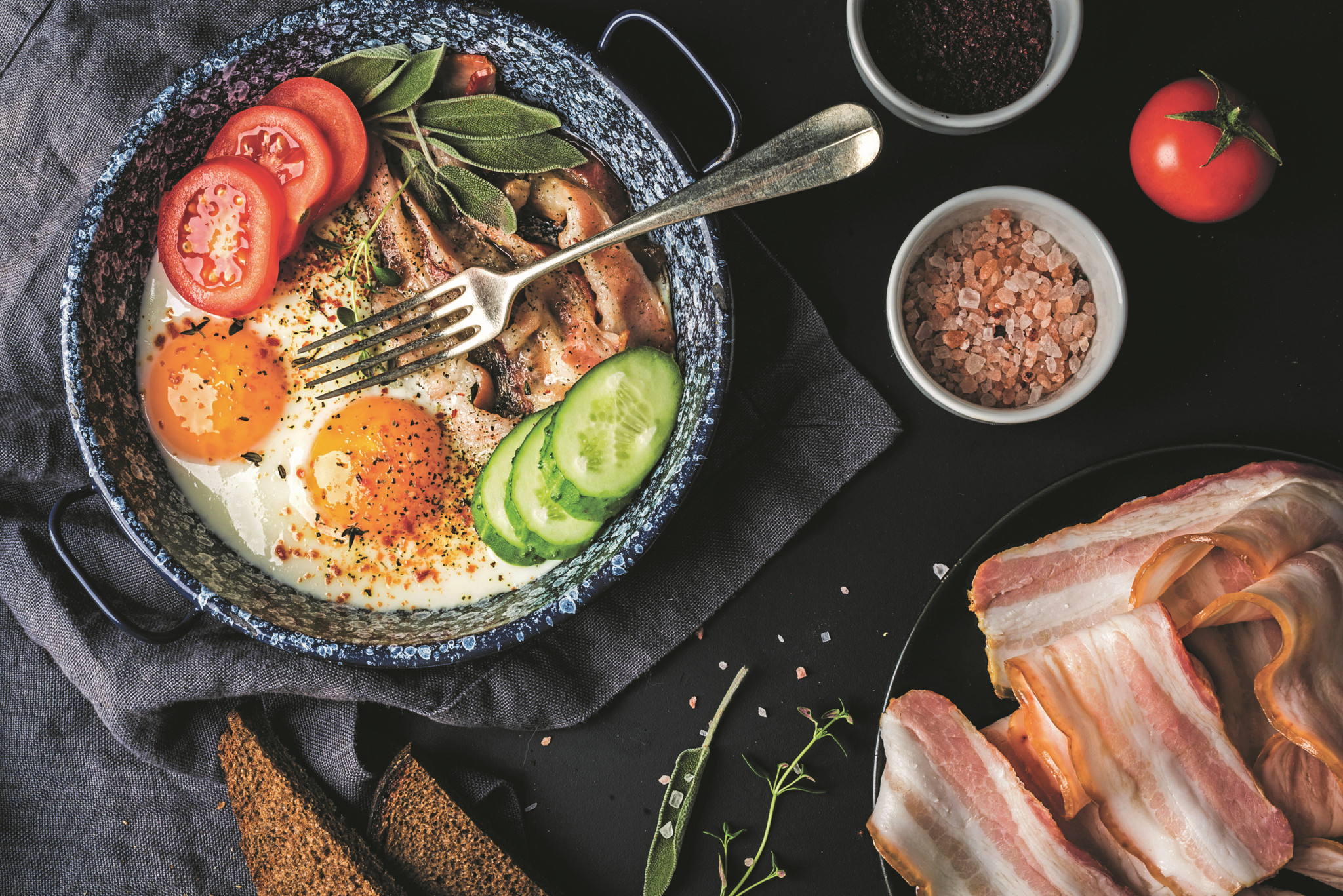 Приготовление глазуньи – дело нехитрое. Достаточно разогреть на сковороде масло и выпустить разбитые яйца так, чтобы желтки остались целыми. Если должной сноровки пока нет, можно сперва разбить яйца в отдельную миску и уже из нее отправить их в сковороду. Жарят такую яичницу, посыпая солью только белки, поскольку кристаллики соли, попавшие на желток, образуют светлые пятна, которые нарушают идеальный внешний вид блюда. Происходит так потому, что на поверхности желтка есть тончайший слой белка, и, оказываясь на нем, соль уменьшает температуру денатурации, и прозрачный белок в этом месте мутнеет. Из-за этого же эффекта не рекомендуется закрывать сковороду крышкой: слой белка над желтком свернется и желток покроется белой пленкой.