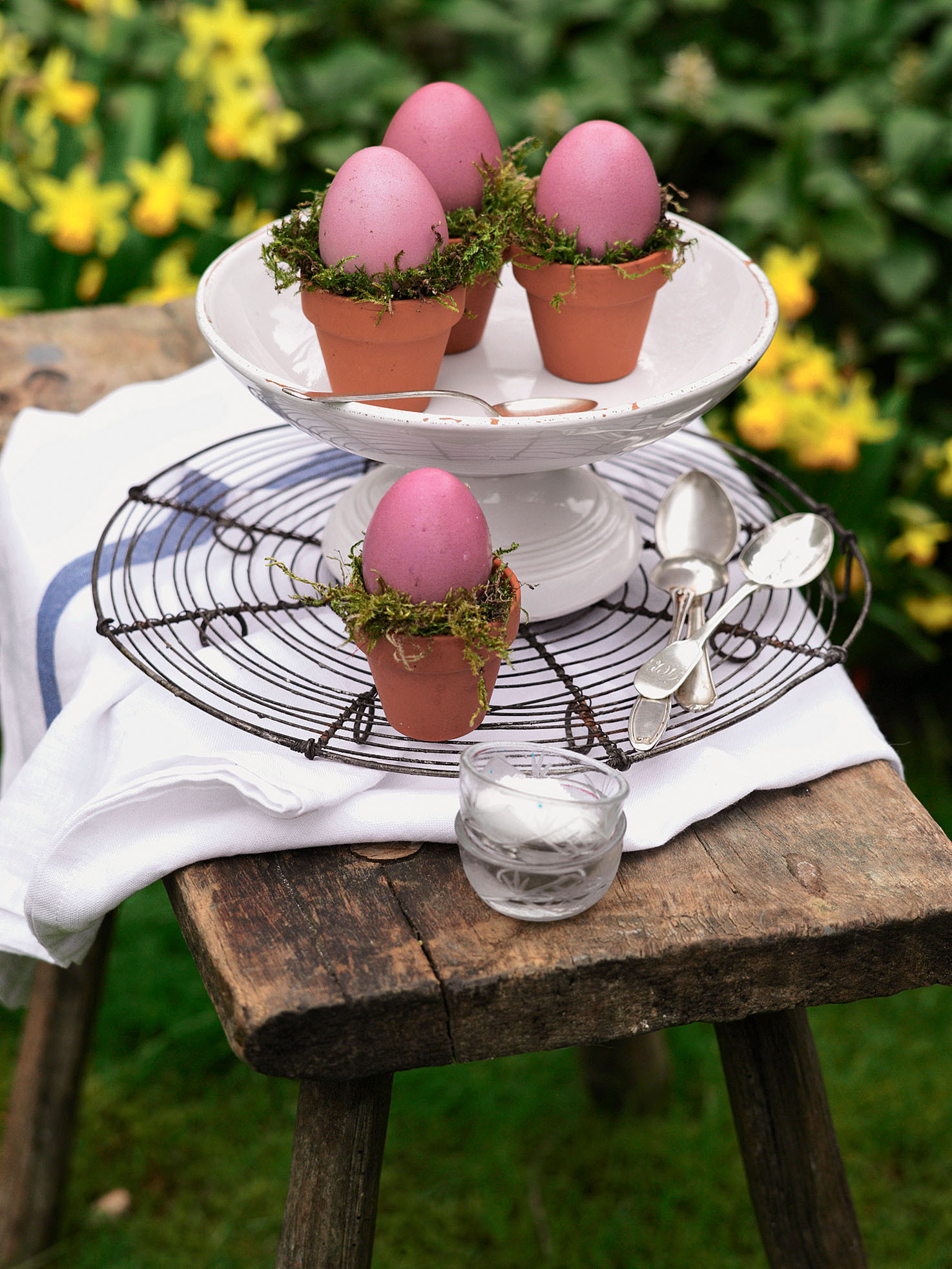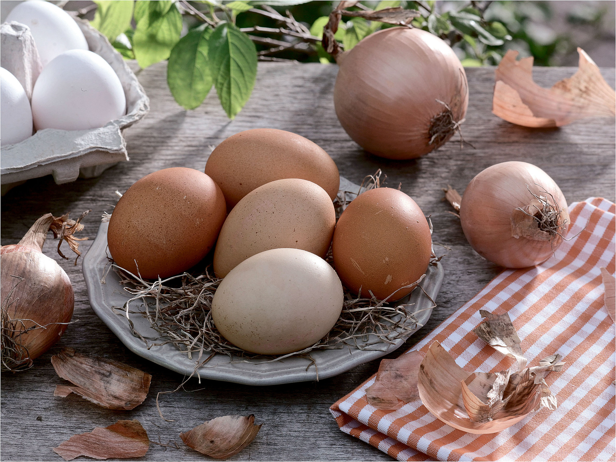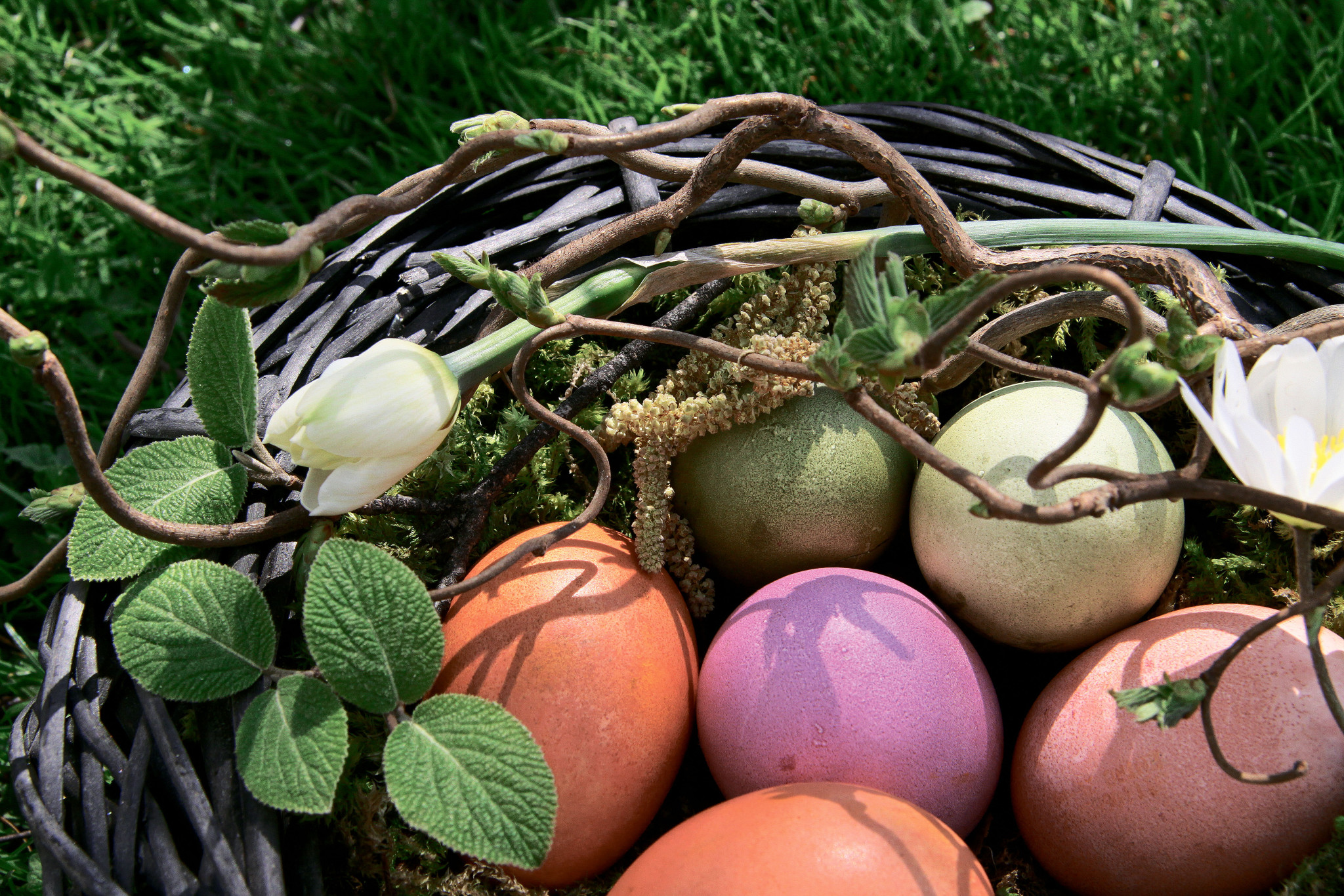 Возможно, вы сами уже неоднократно красили яйца луковой шелухой, но благодаря садовым растениям и диким травам палитра красок может быть намного более разнообразной. Желто-зеленого оттенка легко добиться, используя листья крапивы, полынь или зверобой продырявленный. Чистый желтый цвет достигается с помощью ромашки или золотарника. Красно-фиолетовый оттенок получается при окрашивании яиц краснокочанной капустой или свеклой. А если хочется, чтобы в пасхальном гнезде лежали яйца зеленого цвета, нужно сделать отвар из листьев шпината, петрушки или плюща.