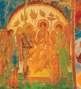Некоторые исследователи отмечают, что палитра красок Дионисия в Ферапонтовом монастыре созвучна суровой красоте северных пейзажей. Фрески великого иконописца чем-то напоминают акварель с нежными, полупрозрачными, но в то же время яркими цветами. А какое богатство тонов: здесь белые, розовые, желтые, светло-зеленые. Но главным в этой симфонии выступает ярко-голубой.