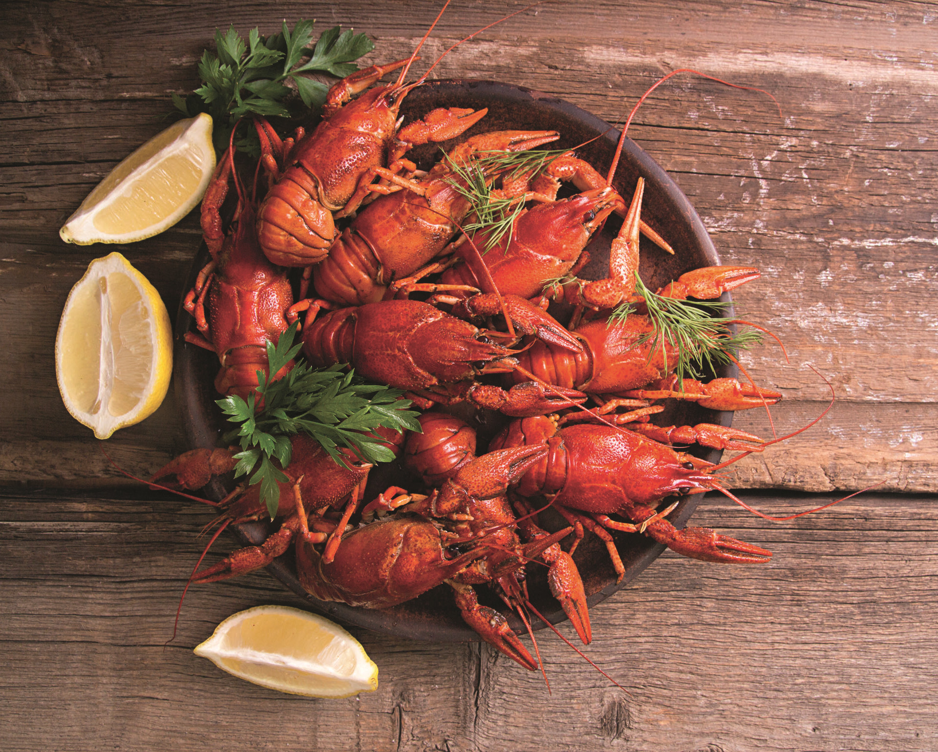 6. Выложить раков на большую тарелку. Можно сбрызнуть лимонным соком или просто подать с ломтиками лимона.