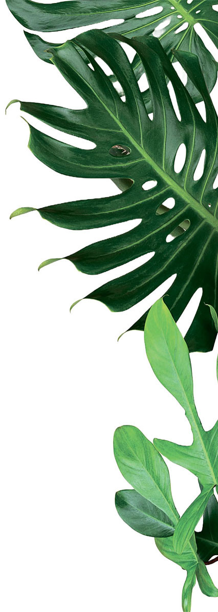 Монстера и антуриум. Отличная пара для просторной комнаты. И у того, и у другого цветка красивые листья вытянутой формы. Любят неяркий свет и частое опрыскивание теплой водой из пульверизатора.