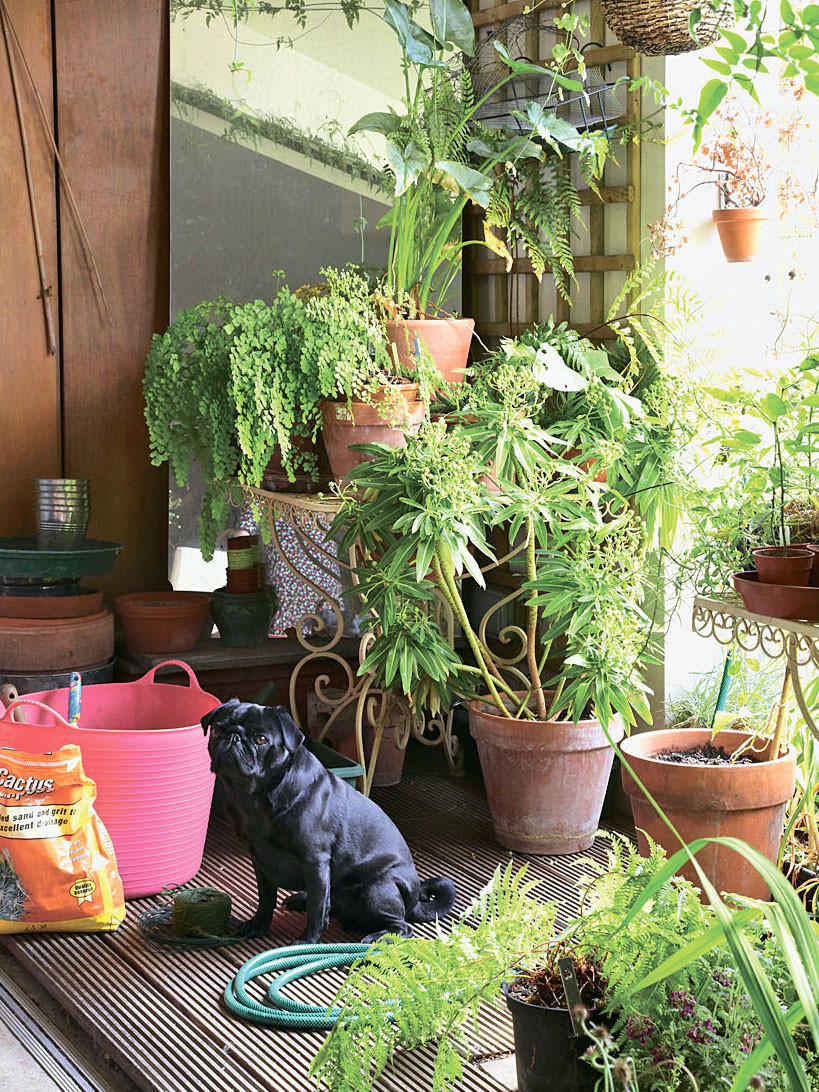 Вариантов, как создать такую зону в своей квартире, существует немало (как и простых, но действенных советов от дизайнеров). Можно расставить невысокие растения на подоконнике и дополнить их подвесными кашпо, если позволяет высота окна. Высокие и раскидистые цветы лучше не ставить на окна, поскольку так они будут «съедать» драгоценное естественное освещение. Ампельные растения хорошо смотрятся на полках или открытых книжных шкафах. Большие напольные кадки с цветами лучше использовать для украшения углов помещения — так они не будут выглядеть чересчур громоздко. Из зеленого декора можно сделать целую живую стену: поставить многоярусную этажерку и наполнить ее горшками с растениями. Еще один креативный сценарий: повесить на одной из стен металлическую сетку и прикрепить к ней держатели для цветочных горшков. Это удобное решение, если помещение не очень большое и поставить раскидистые растения особо негде. Для небольших комнат также хорошо подходят стеклянные флорариумы с суккулентами, кактусами и камушками — они не занимают много места, и их при необходимости легко переставить.