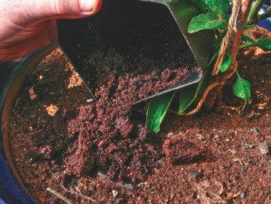 рододендронов или гортензий. Разведенная в воде гуща считается отличной жидкой подкормкой для плюща. Внесенная в большом количестве, она позволит сделать более рыхлой тяжелую почву, улучшит структуру песчаной, а также компоста. Кроме того, кофейный запах отпугивает муравьев.