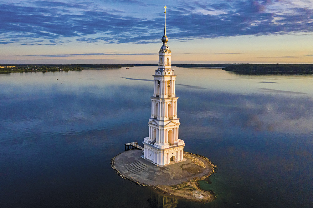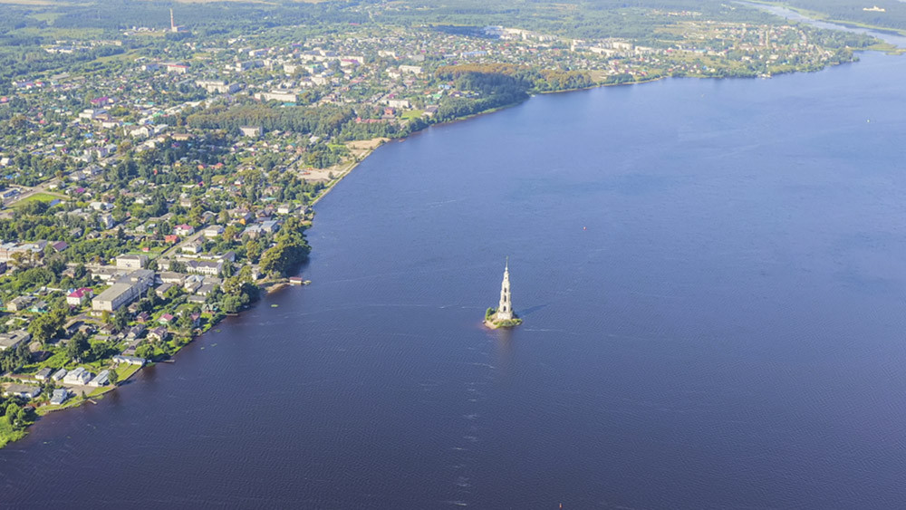 Славу этого города составляет одна главная достопримечательность, но ради нее не жаль преодолеть лишние километры. Это затопленная колокольня Никольского собора. Лучший вид на одинокий шпиль посреди Волги открывается с проплывающих круизных теплоходиков