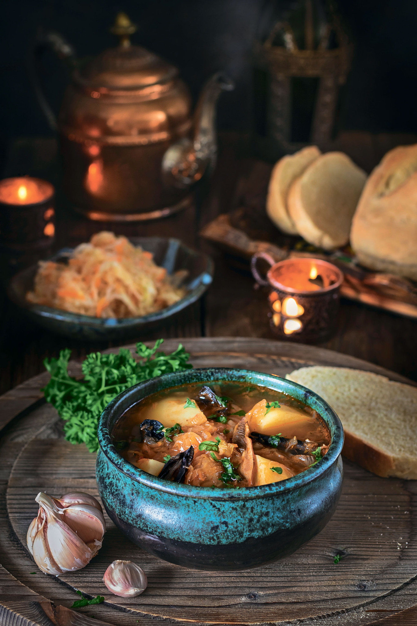 Не соврем, если отметим, что этот суп случался на столах наших предков чаще, чем что-либо еще. И всякие часто звучащие фразочки вроде «Щи да каша — мать наша», «Щи всему голова», «Где щи, там нас и ищи» лишь подчеркивали, насколько это блюдо для них было важно и незаменимо. Вариаций его приготовления множество: со свежей капустой или квашеной, с яблочным рассолом или мучной заправкой, с пряностями или без — главное, чтобы щи не просто варились, а долго томились-настаивались (желательно в горшке на печи) для приобретения своего уникального вкуса и аромата.