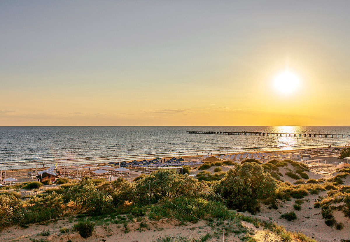 Название пригорода популярного курорта переводится с адыгейского как «золотые пески». И это, конечно, неслучайно. Роскошные песчаные дюны, где живут ящерки и растут маслины, переходят в просторные, местами до сотни метров в ширину пляжи.
