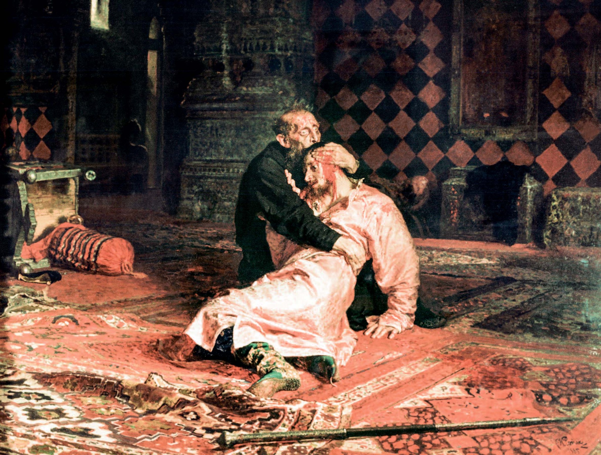 Казалось, эта картина вообще отмечена роковой печатью под стать своим героям. Александр III, едва увидев холст, был так шокирован, что повелел не допускать до выставок. Только многоголосый хор художников и писателей переубедил царя. Народ валом валил в Третьяковку, и никого «Иван Грозный...» не оставил равнодушным. Спустя три года после создания полотна вновь заговорили о его роковой магии: тридцатитрехлетний писатель Всеволод Гаршин, с которого художник писал убиенного царевича, в 1888 году покончил с собой, бросившись в лестничный пролет.