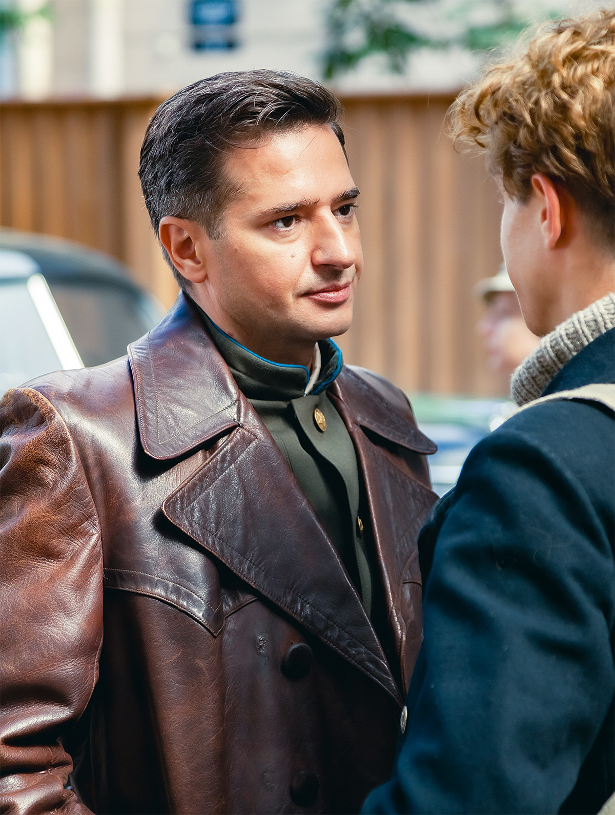 — Очень люблю, мне нравится надевать военную форму, а здесь еще период — конец 40-х — начало 50-х годов. Форма тех лет, конечно, любого мужчину украшает очень сильно. Особенно когда это летчик. Тут что ни костюм, то восторг. Девочки-костюмеры видели, что мне очень нравится белый китель, но по сюжету у нас не было сцен, где я могу его использовать. В итоге они сказали: «Ладно, мы придумали, давай вот в этой сцене ты заедешь за ней в белом кителе». Да, мне невероятно нравится вся эта история.