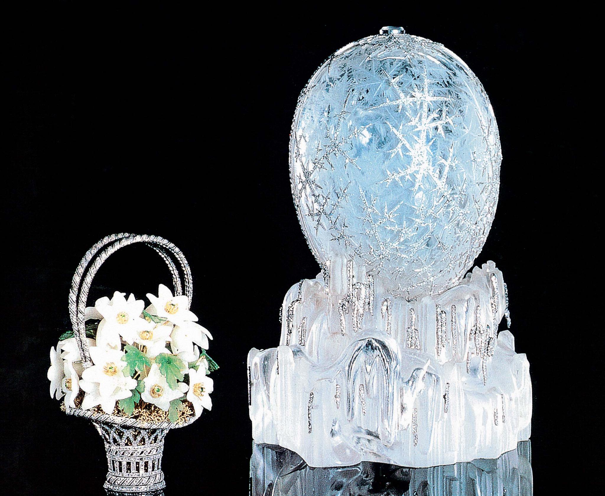 «Вот это да-а-а! — воскликнул изумленно государь, глядя на ледяное яйцо. Императору показалось, что оно холодное на ощупь. — Карл Густавович, вы просто волшебник!» Николай даже немного разочаровался, когда узнал, что прозрачная скорлупа выточена из горного хрусталя и украшена искусной резьбой, — столь совершенной была имитация льда в пасхальном подарке. Внутри, едва различимая сквозь морозный туман, пряталась платиновая корзиночка с белыми подснежниками.