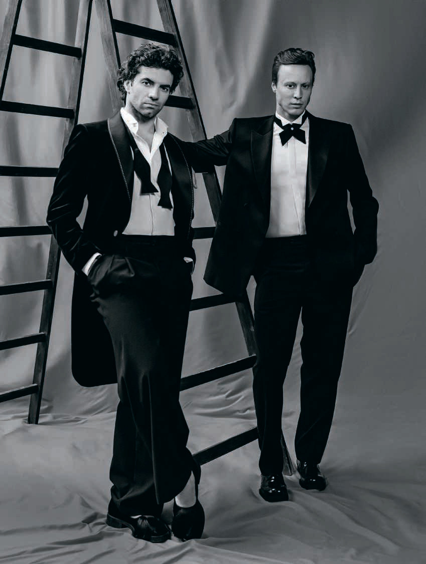 На Игоре: фрак Tegin, рубашка Karree, брюки Lime, обувь ALEKSANDER SIRADEKIAN. На Владимире: пиджак и брюки Tegin, обувь Vitacci