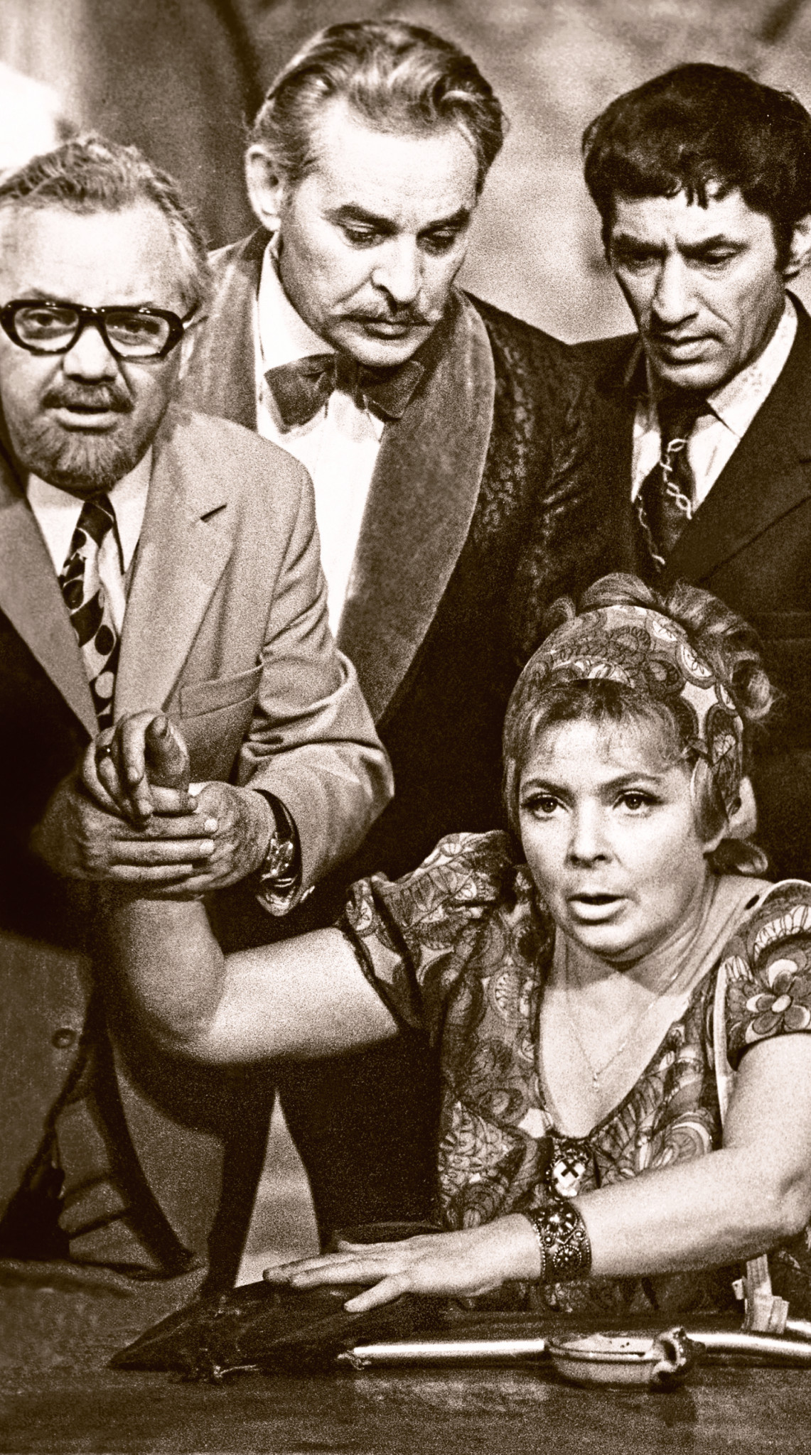 Помню, когда мы с Борей пошли в школу, тетя Оля бросила цирковое училище, где она училась ходить по проволоке. Я очень ей завидовала, глядя, как ловко у нее это получалось. Но все ее мысли были о театре. Ей было пять лет, когда папа ее и сестер привез в Венскую оперу. Тот восторг, который она испытала в театре, запомнила на всю жизнь. А в актрисы ее потянуло, когда в Праге она посмотрела «Трехгрошовую оперу» Бертольта Брехта. На следующий день они с подружкой порезали платья, испачкали их, как было у героев в спектакле, и в таком виде на улице, распевая песни, рассказывали слезливую историю о тяжелой жизни и просили милостыню. Папа не понял этой выходки, но актерствовать дочери не запретил, наоборот, поощрял. Тетя Оля выступала на посольских вечерах и даже пела на немецком языке.