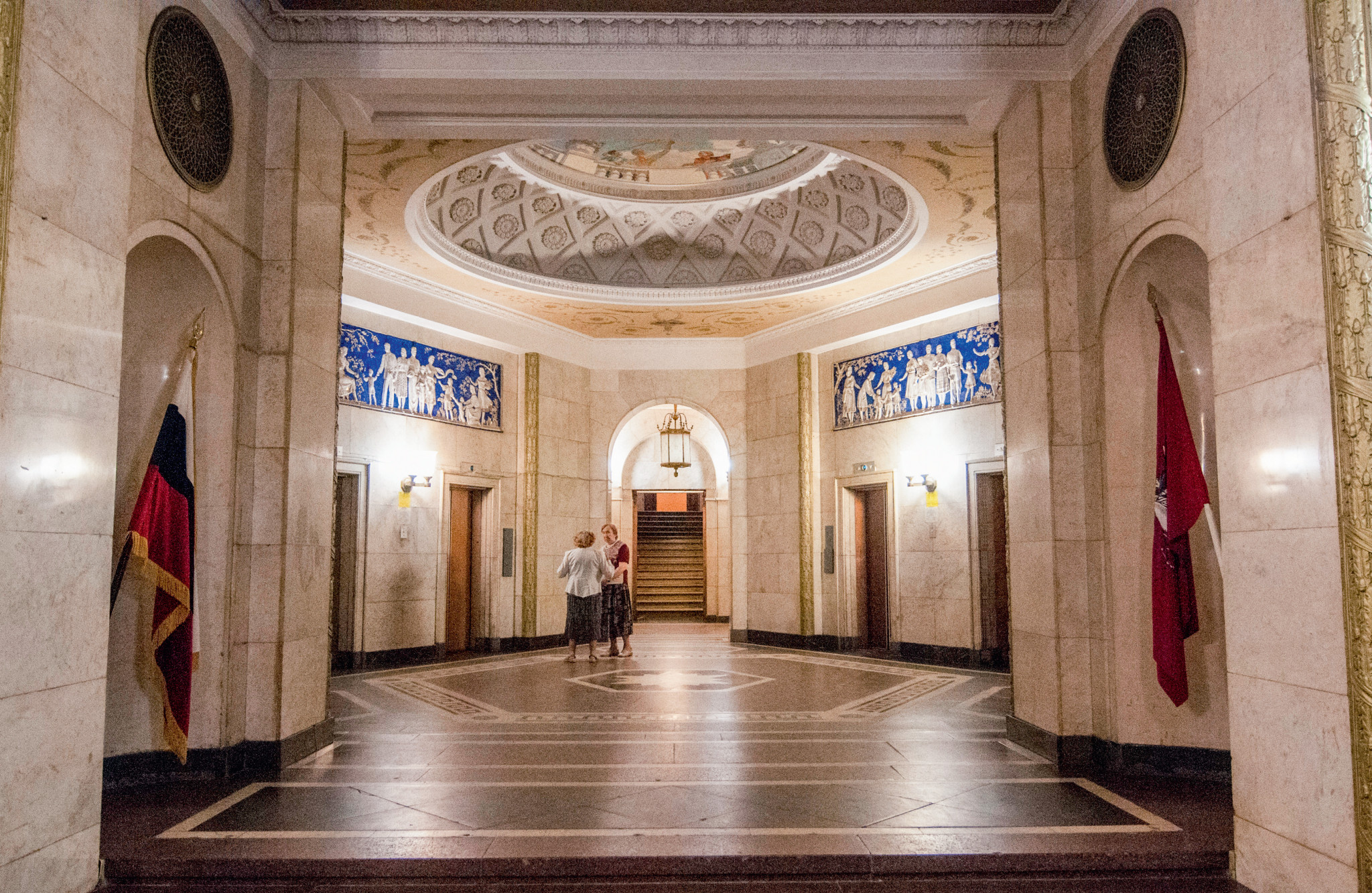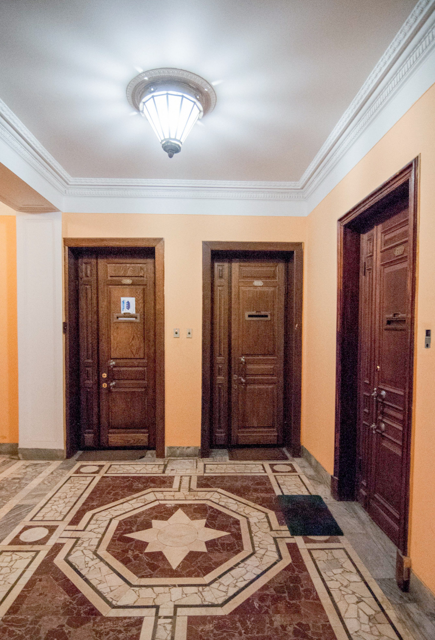 Великолепные подъездные холлы напоминали театральные фойе. Полы выполнены из полированных гранитных и мраморных плит. Потолки расписаны в технике гризайль. Стены отделаны барельефами из тончайшего фарфора цвета чайной розы и слоновой кости, освещают всю эту красоту массивные люстры с хрустальными подвесками и настенные бра, имитирующие старинные бронзовые подсвечники. В архитектурный комплекс входил и благоустроенный внутренний двор с пышными клумбами, фонтанами и асфальтированными дорожками.