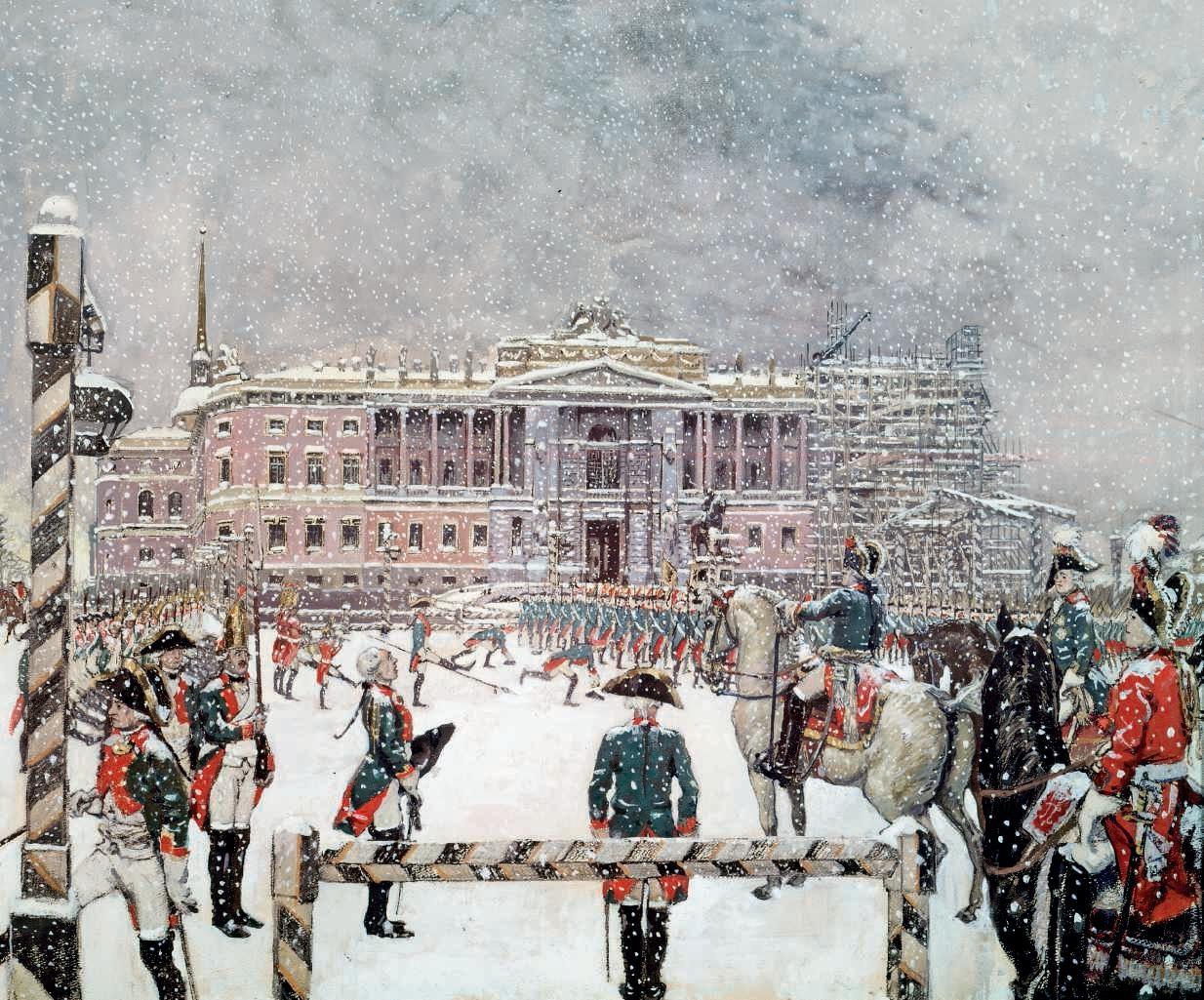 Фото: Leemage/Corbis/Getty Images/Фото репродукции картины Н. Бенуа «Парад при Павле I». 1907 Г. Государственный Русский Музей