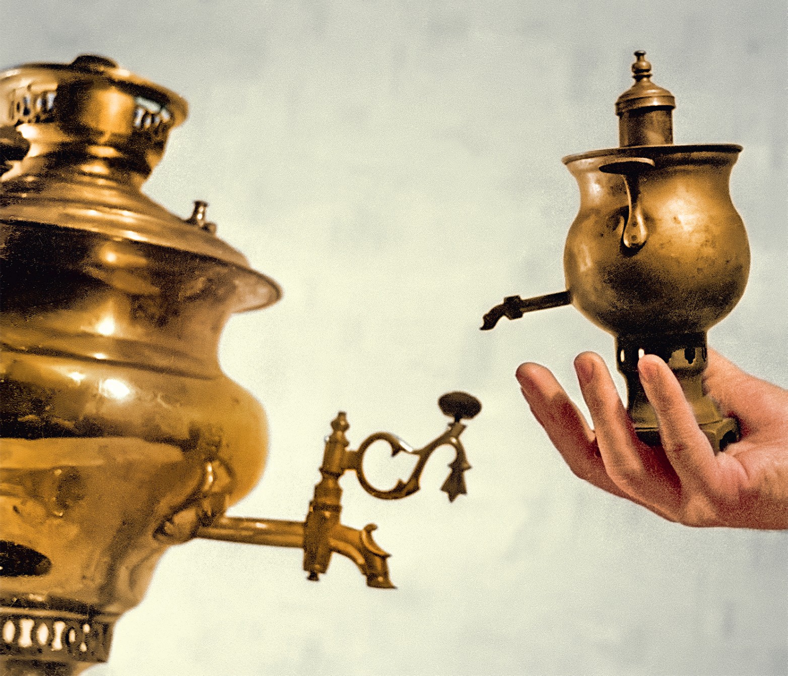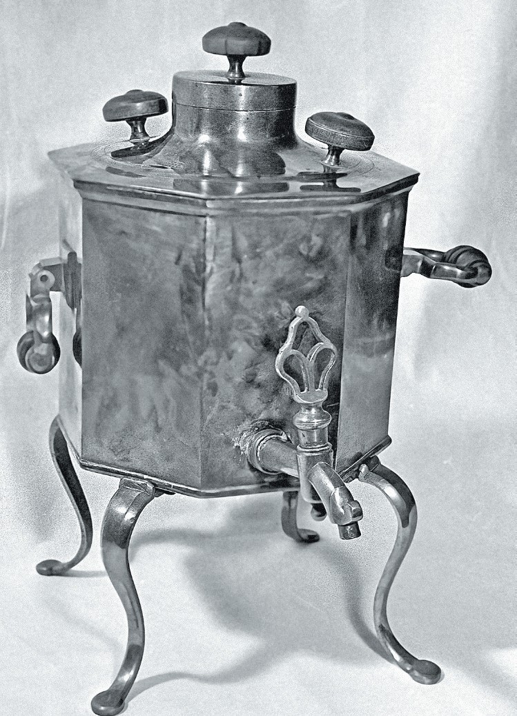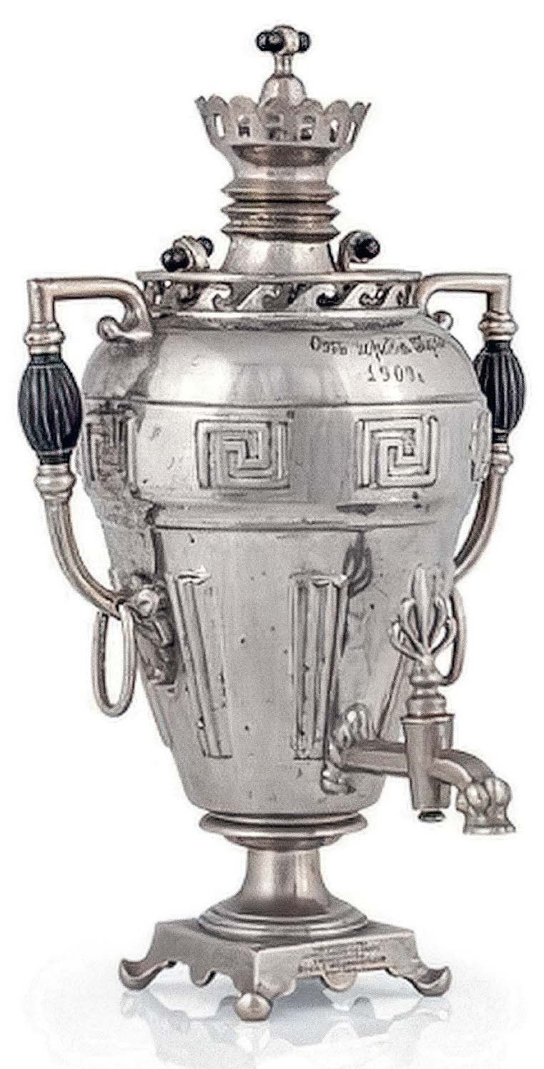 К приезду августейшего семейства в Тулу на фабрике наследников Василия Баташева изготовили пять крошечных — вмещали всего стаканчик — сувенирных моделей из никелированной латуни, каждый со своим характером. Старшей княжне Ольге, застенчивой и сдержанной, предназначалась ваза рококо со строгим орнаментом. Татьяне — стройной, высокой — изящная «рюмка». Марии, самой хорошенькой, — античный сосуд с медальоном-зеркалом, проказливой Анастасии — «шар гладкий», наследнику Алексею — самовар с короной.