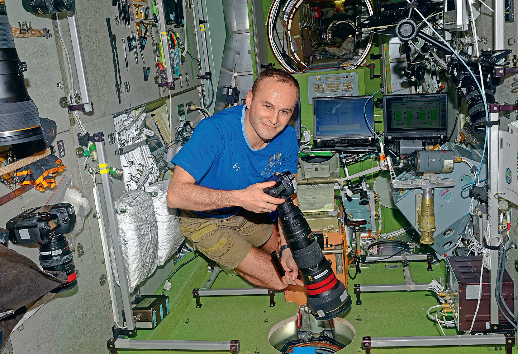 Фотосъемка на МКС. Непростая задача — в невесомости фотографировать таким большим фотоаппаратом через такой маленький иллюминатор. Фото: из архива С. Рязанского