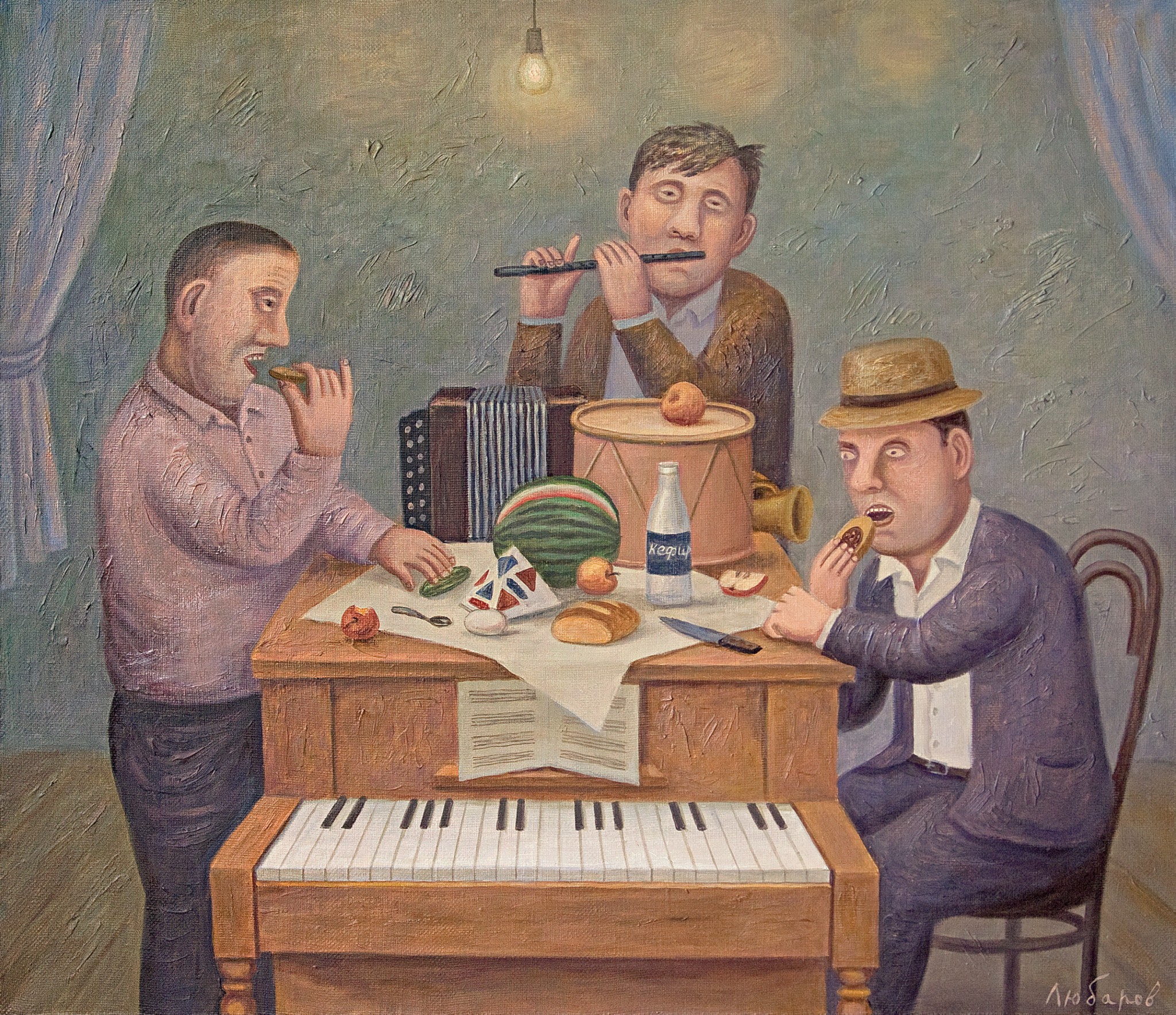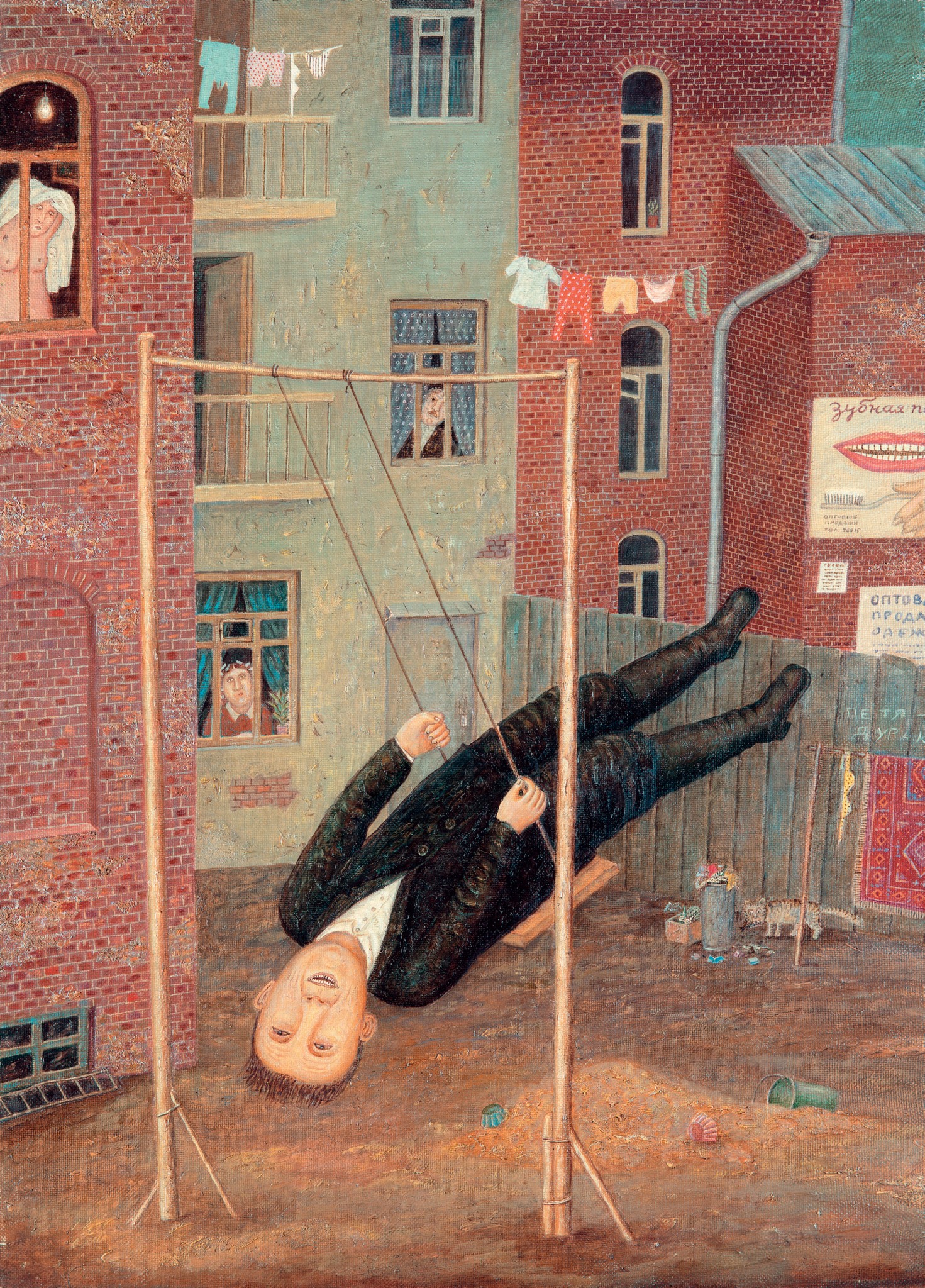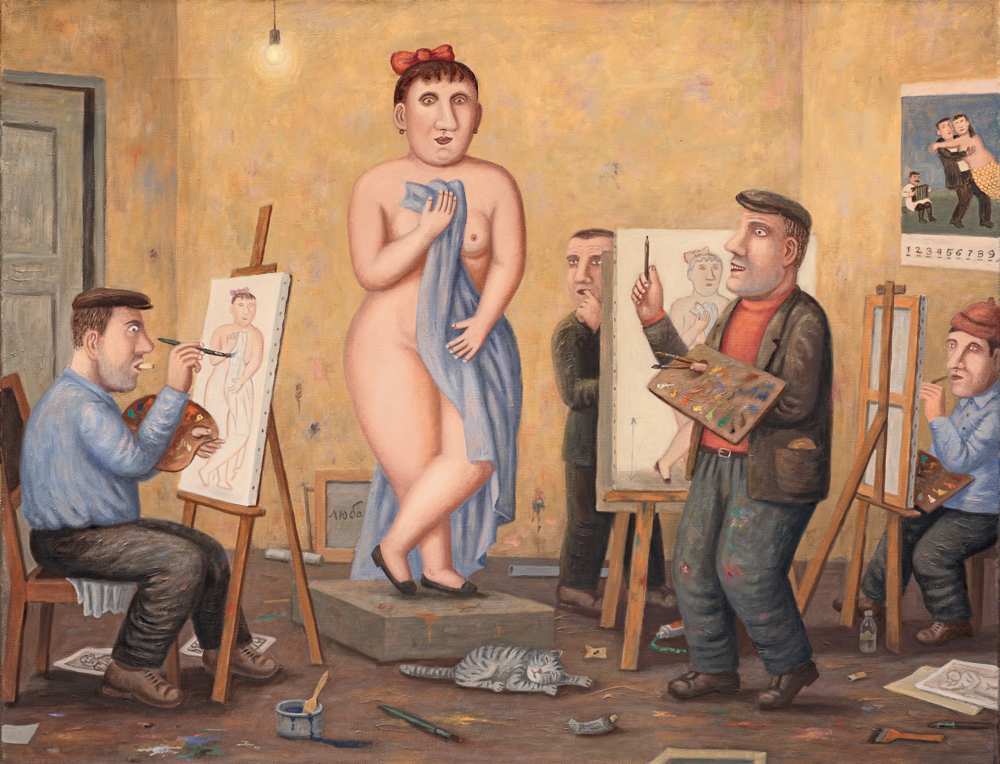 На одной из картинок своей живописной серии «Дом культуры» я нарисовал изостудию и в ней — обнаженную натурщицу с бантиком. Помню, в школе была у нас одна такая — немолодая, слегка нетрезвая, но обязательно с кокетливым бантом.