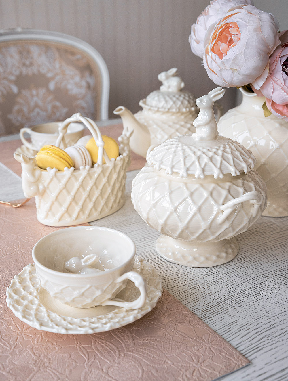 Затевая роскошное чаепитие, будем следовать правилам этикета. В центр стола нужно поставить сахарницу, молочник на специальном блюде, графин с сиропом , а по краям — тарелки с выпечкой, несладкими закусками и конфетами. Напротив каждого гостя располагается десертная тарелка, справа от нее — нож, вилка и ложка, сверху — приборы для фруктов, слева — розетки для варенья, джема, меда или сгущенного молока, справа — чайная чашка с блюдцем и ложкой.