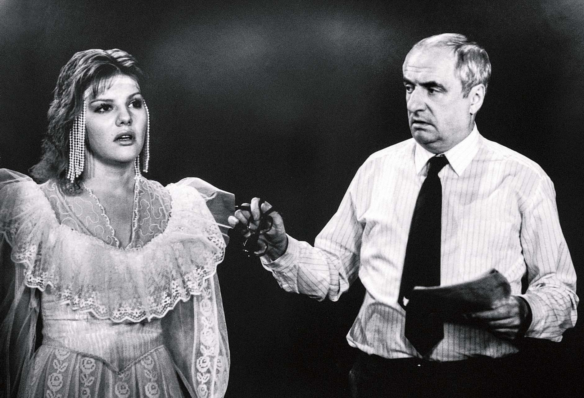 «Меня приглашали пять театров. И даже Андрей Александрович Гончаров позвал в труппу, это было безумно приятно. Но я мечтала работать в «Ленкоме», куда и была принята». Александра Захарова с Марком Захаровым на съемках фильма «Убить дракона», 1988 год. Фото: из архива А. Захаровой