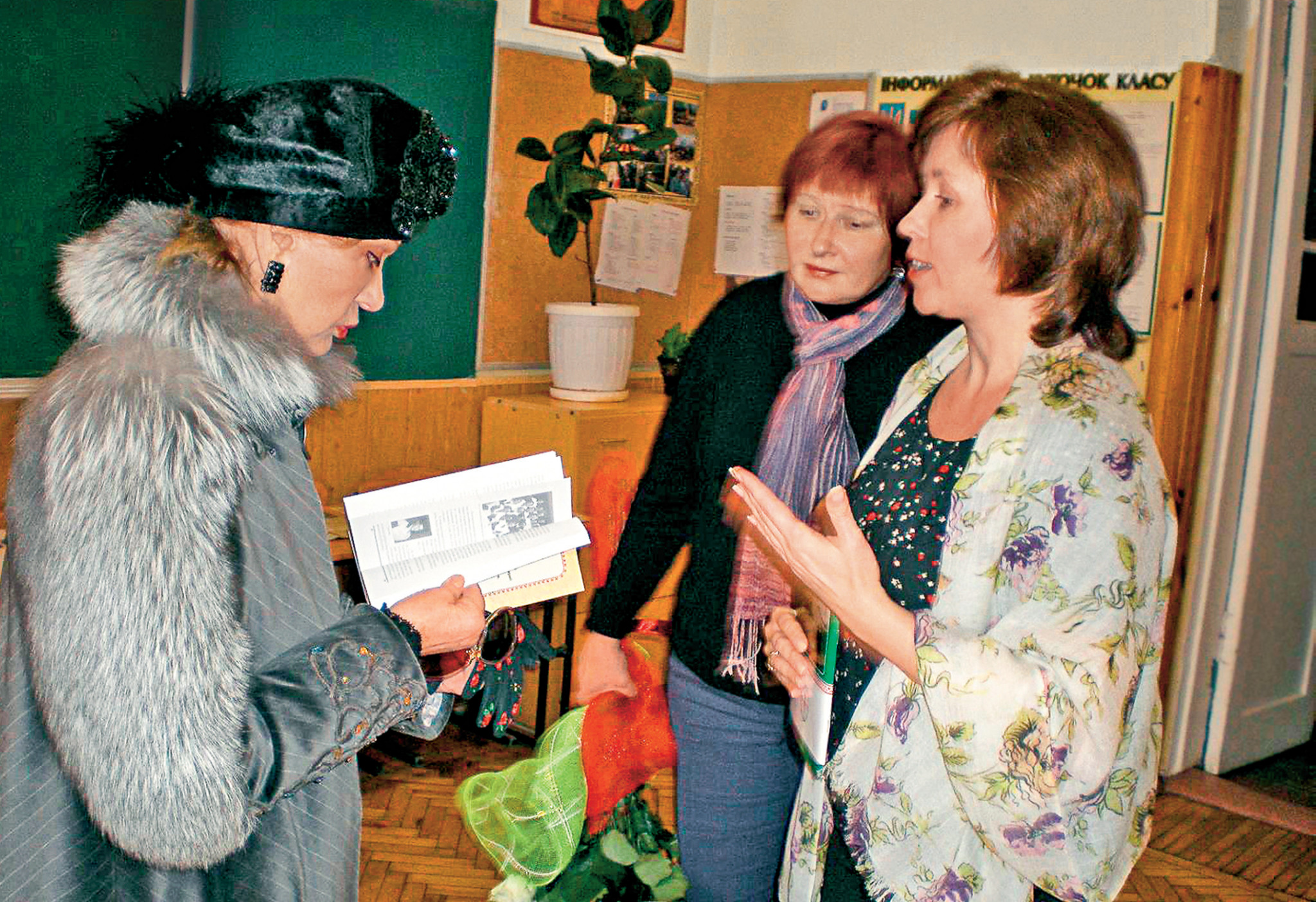 «Однажды в 2000 году выхожу из кабинета, смотрю, по коридору школы прогуливается женщина в элегантном пальто, шляпе и перчатках. Оборачивается — Гурченко! Я просто дар речи потеряла! А Людмила Марковна спокойно так говорит: «Это вы теперь здесь директор? А я тут 10 лет проучилась. Хотите, покажу, за какой партой сидела?» Так начались наше знакомство и наша дружба. Людмила Марковна потом еще несколько раз приезжала в Харьков, и мы с ней встречались, разговаривали. Она с удовольствием вспоминала свое харьковское детство...»