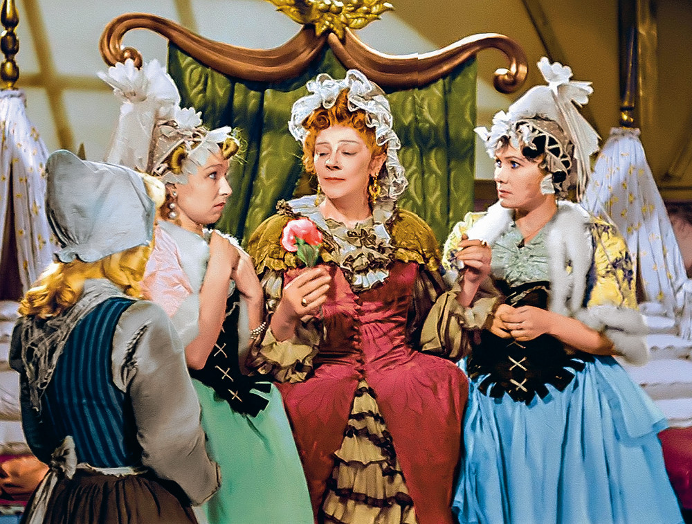 Фаина Раневская с Яниной Жеймо, Тамарой Селезневской и Еленой Юнгер в фильме «Золушка», 1947 год. Фото: Ленфильм/Кадр из фильма «Золушка»