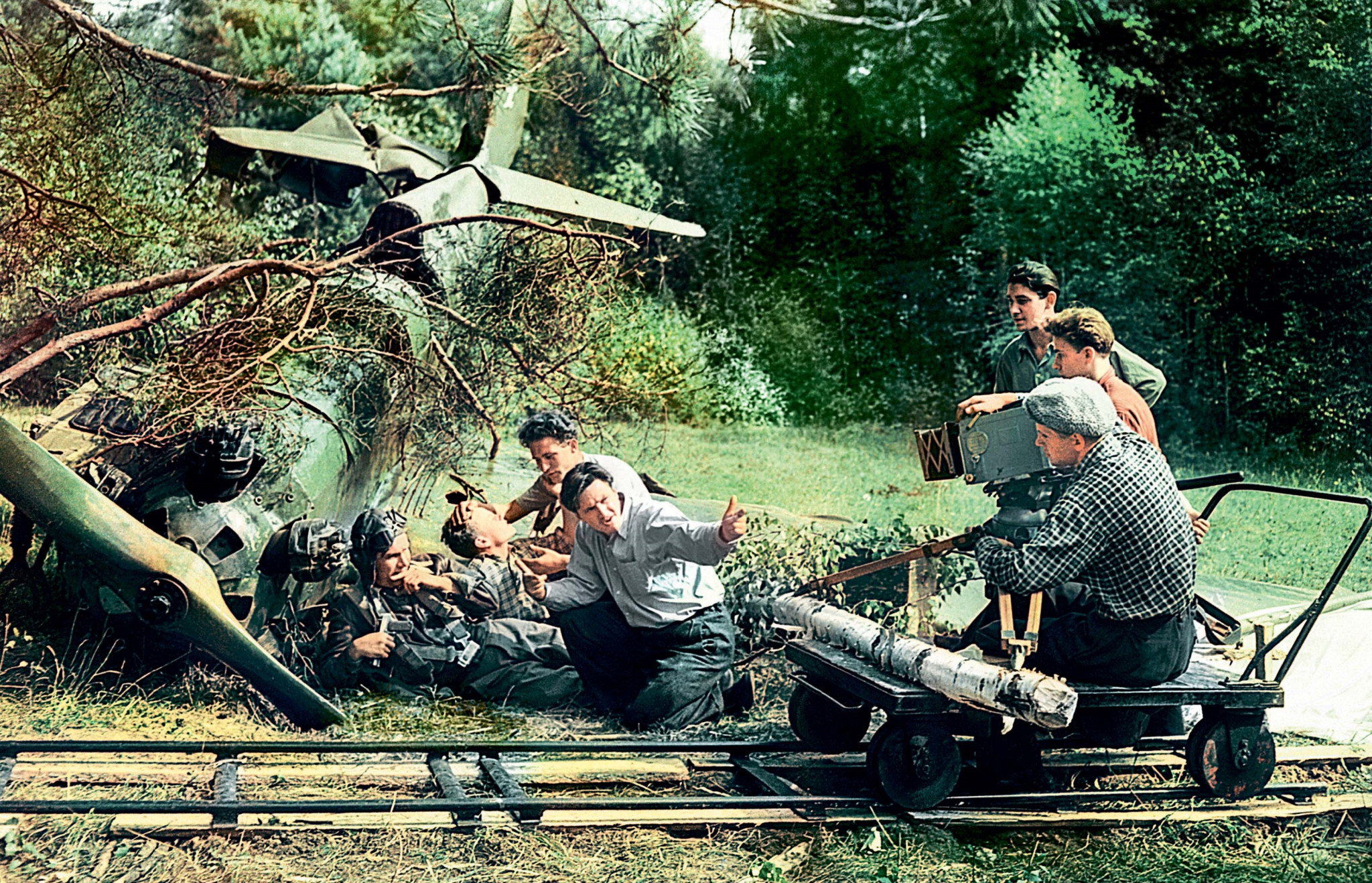 В кадре требовался самолет, и ребятам пошла навстречу располагавшаяся под Серпуховом авиачасть, военные разрешили использовать стоявший у них на приколе Ан-2. Его привезли на площадку, только начали снимать, как к нам явился участковый. Оказывается, кто-то из местных донес, что киношники собираются улететь на этом самолете... в Америку. Еле разобрались. Думаю, кто-то из жителей деревни Тверитино хотел нам отомстить за то, что много задолжали. Местные предоставляли группе и телегу, и лошадь, чтобы отвозить на площадку тяжеленные аккумуляторы. Знаю об этом не понаслышке, потому что сам таскал и аккумуляторы, и штатив. Пришло время расплачиваться — а нечем! И тогда Володя Минаев и Игорь Черных съездили домой, собрали старые шмотки — кители, отцовские сапоги — и предложили колхозникам натуральный обмен. Те обрадовались, в 1954-м году и таких вещей было не достать.