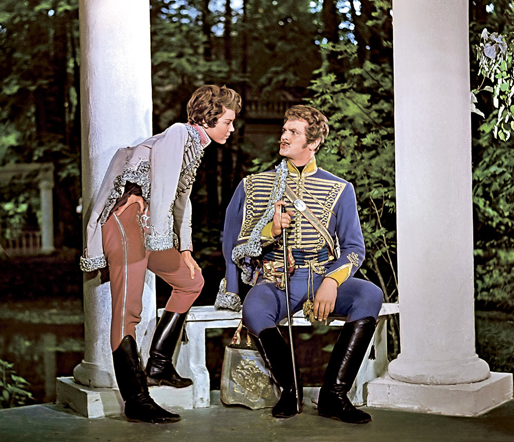 Жили мы в экспедиции в доме отдыха в Рогачево, это сто километров от Москвы. Прекрасное время. Лошади, гусарские костюмы. Мы этим так увлеклись! Играли в войну по-настоящему, только разве что не убивали друг друга, потому что стреляли холостыми. Я подружилась с осетинской группой цирковых наездников Михаила Туганова и вместе с ними на лошадях после окончания съемочного дня рассекала по полям и лесам. А еще все вечерами собирались в холле, и Эльдар Рязанов иногда играл на гитаре и пел. Он казался мне очень взрослым дяденькой. А потом я обнаружила, что у нас разница всего 13 лет.
