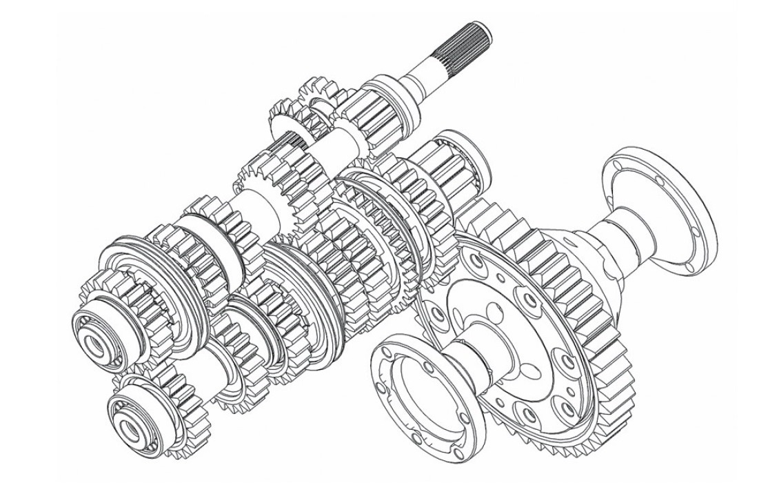 Большой диаметр колеса объясняется двумя факторами. Во-первых, коробка раллийной машины передает от двигателя на колеса солидный крутящий момент. А во-вторых, колесо прямозубое. Достоинство привычных косозубых шестерен, которые применяются в коробках «гражданских» автомобилей, заключается в том, что за счет более длинного зуба и, соответственно, большей поверхности распределения нагрузок они могут передавать тот же крутящий момент при меньших размерах. Кроме того, они работают заметно тише. Но прямозубые колеса применяются в гоночных машинах не случайно: они не создают осевых нагрузок на валах и повышают КПД коробки.