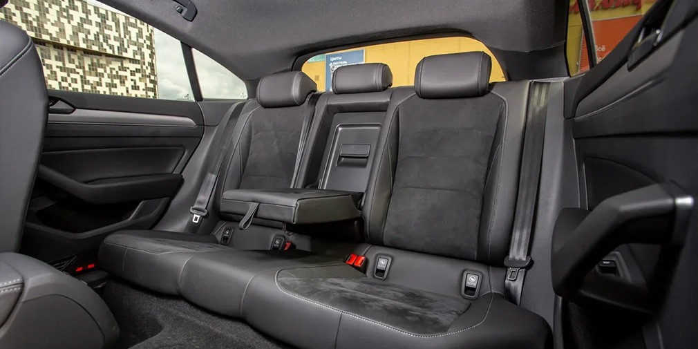 Я понятия не имею, каков Arteon в качестве семейного, потому что даже не пытался ставить в него детские кресла. Но, судя по конструкции, противопоказаний нет: на задних креслах полно места даже с учетом низкой крыши, есть крепления Isofix, а багажник у него вполне сравним с эталонным Skoda Superb. Идея выпустить стильную машину в форм-факторе лифтбэка вообще кажется военной хитростью, потому что это простой способ сделать красивый автомобиль еще и универсальным. Ну, а безрамочные двери — это не просто стильно, но и довольно дорого, по крайней мере, визуально.