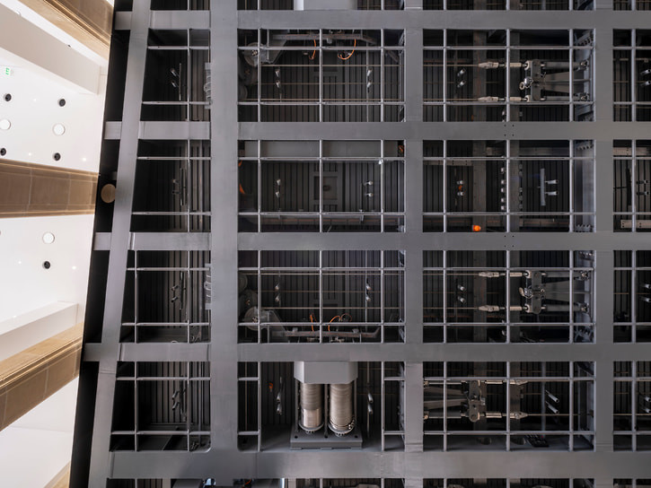 Всему миру Нувель известен уникальными техническими трюками: в его работах тонкая инженерия сочетается с эффектными образами. Здесь главным из них стали пять гигантских передвижных платформ, которые могут перемещаться от подземного до второго этажа, создавая выставочные пространства разной высоты — вплоть до 11 метров. Такая гибкость открывает возможности, которых прежде не было ни у одного музея: помимо классических экспозиций изобразительного искусства здесь можно организовывать перформансы и спектакли и возводить инсталляции высотой в несколько этажей.