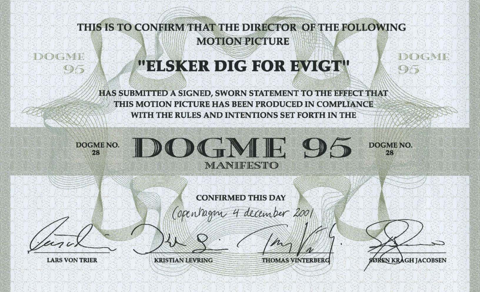 Приуроченная к столетию кино и озвученная Триером и Винтербергом 13 марта 1995 года в Париже, «акция спасения» синематографа предлагала шагнуть в XXI век с обновленным вокабуляром. Ручная камера и отказ от декораций, никакого саундтрека (только живая музыка в кадре), никаких ауторов (sic!), кино — это коллективное творчество. В контексте кривой Триера четверть века спустя манифест выглядит как минимум иронично, но в 1990-е датская «новая волна» навела шуму и довела трясущуюся камеру аж до Голливуда, где до сих пор нет-нет да и поймают в нервный прицел очередного Борна. Сам Ларс при этом подчинился завету только однажды — в «Идиотах» (1998), а в остальное время, даже в «Рассекая волны» (1996), жил по принципу «правила созданы, чтобы их нарушать». Впрочем, шарм раннего — или зрелого — Триера сформирован именно околодогматическими фильмами с их стремлением избежать рамок и создать новые («Догвилль»).