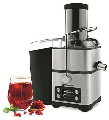 Сезон витаминов встречаем с центробежной соковыжималкой BR1704 от Brayer. У нее 4 скорости для мягких и твердых продуктов, широкий желоб, который позволят поместить фрукты до 75 мм целиком, контейнер для сока объемом 1,1 л и противокапельная система желоба для слива сока, что очень удобно в использовании.