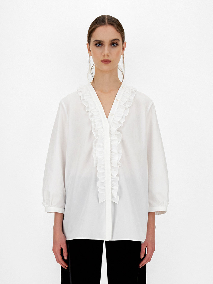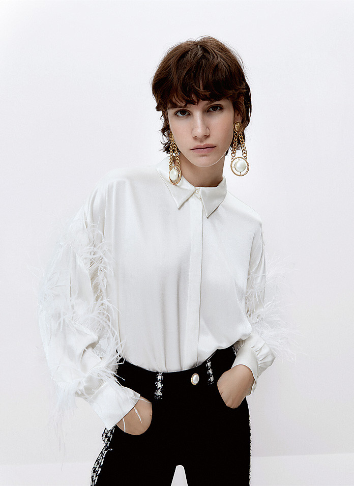 Силуэт. Если тебе больше идут более приталенные силуэты, лучше обратить внимание на вискозу или шелк. Такая ткань струится по телу и смотрится очень аккуратно. Чтобы рубашка проработала в гардеробе не один сезон, обрати внимание на базовые, но современные силуэты. Это может быть прямой силуэт – самый универсальный. Такую рубашку можно здорово застилизовать для любого типа фигуры. Но также можно выбрать полуприталенный вариант – он смотрится более женственно и отлично работает в элегантных луках.