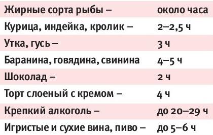 Чтобы усвоить баранину или говядину, организму требуется более 4–5 часов (смотри нашу таблицу). Утка или гусь перевариваются быстрее, но содержат до 30% скрытого жира. Поэтому их на ночь тоже лучше не есть. Для праздничного ужина хорошо подходят более легкие белковые блюда из нежирной птицы или рыбы (усваиваются до 1,5–2 ч). Или, к примеру, запеченный кролик с овощами и свежей зеленью.