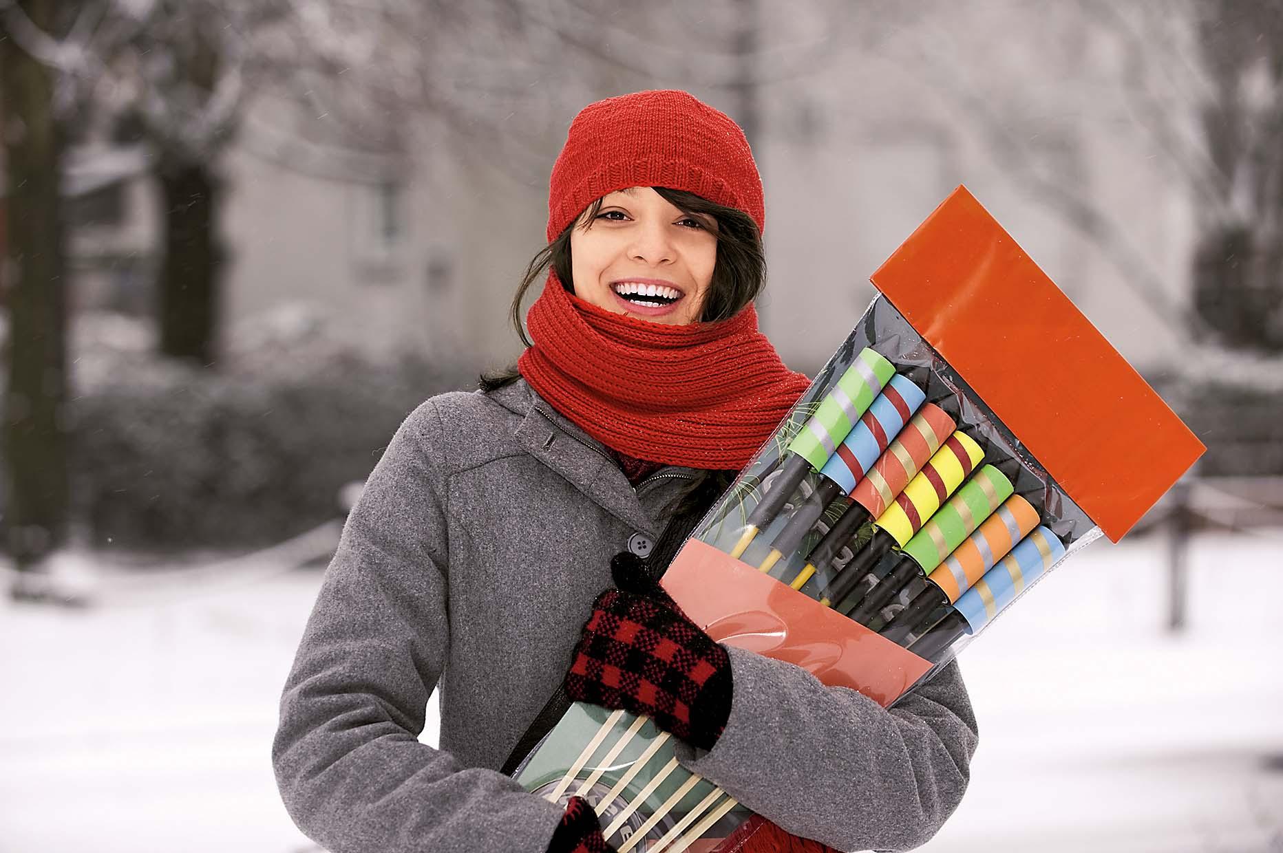 Поджигать пиротехнику лучше бенгальским огнем, держа его на вытянутой руке. Перед тем как выбросить использованный фейерверк, пару минут подержи его в снегу.
