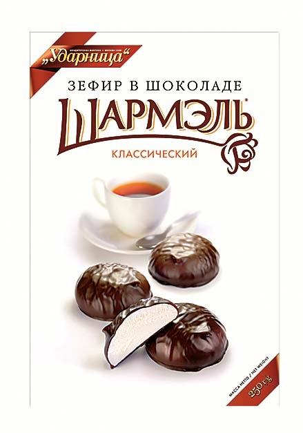 В суете повседневных дел обязательно найди время для маленьких удовольствий! «ШАРМЭЛЬ» – изысканные легкие сладости, которые не содержат жиров. В основе каждого продукта – только натуральные компоненты: яблочное пюре, яичный белок и агар-агар (уникальное полезное вещество, которое получают из морских водорослей). Зефир в шоколаде «Шармэль», созданный кондитерами ОАО «Ударница», глазирован настоящим шоколадом.