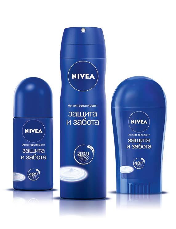 Наконец-то после бритья подмышек не будет возникать дискомфорт! Формула дезодорантов-антиперспирантов Nivea «Защита и Забота» с пантенолом и увлажняющими веществами успокоит и восстановит чувствительную кожу. А про запах пота можно забыть на 48 часов! Дезодоранты-антиперспиранты NIVEA: спрей – 125 руб.*, ролик – 105 руб.*, стик – 132 руб.*
