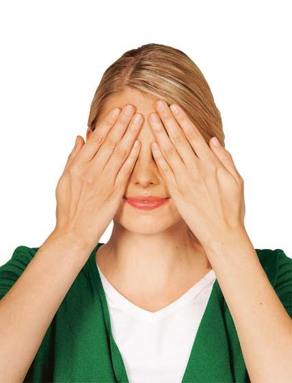 Чтобы снять усталость и напряжение с глаз, закрой их чистыми теплыми ладонями, максимально расслабься и постарайся увидеть перед глазами полную темноту. Повтори упражнение еще 3 раза.