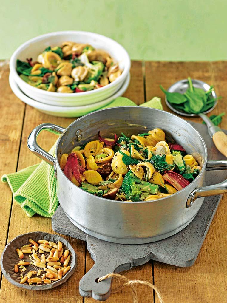 • 500 г пасты • 300 г шампиньонов • 300 г брокколи • 50 г твердого сыра • 2 зубчика чеснока • 2 ст. л. горчицы • 1–2 щепотки сухого шалфея