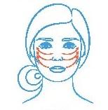 Поставь указательные пальца под подбородок и легкими нажатиями двигайся от центра в стороны.