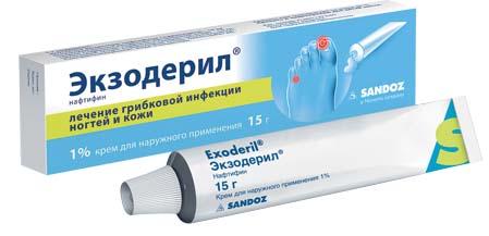 Крем «Экзодерил» для лечения грибка кожи и ногтей уничтожает грибок и быстро снимает зуд и шелушение.