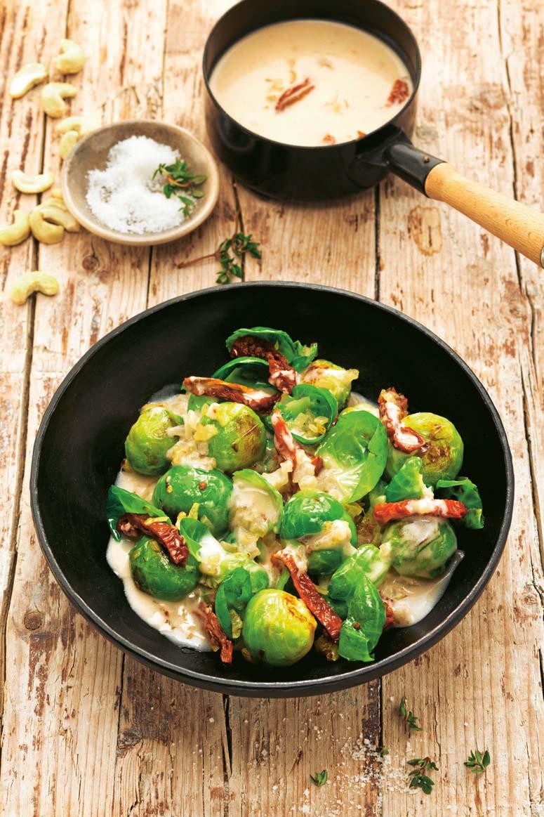 Ингредиенты: • 500 г брюссельской капусты • 50 г вяленых помидоров • 1 зубчик чеснока • 2 ст. л. лимонного сока